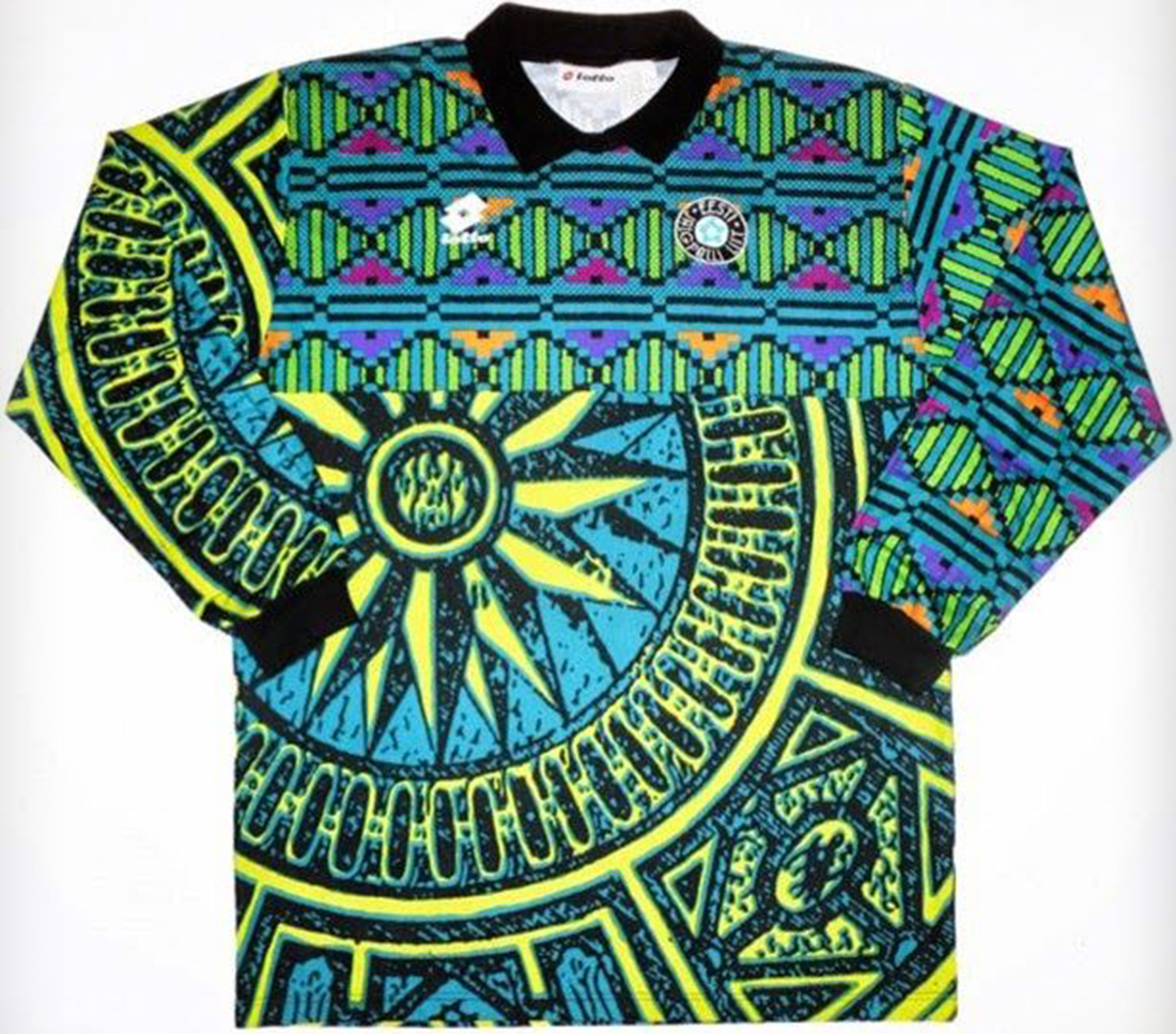 Η εμφάνιση της εθνικής Εσθονίας του 1996 έχει πολλά για να σχολιάσει κανείς. Μοτίβο από παλιά ηλεκτρονικά παιχνίδια 8-bit, αλλά και σύμβολα που θυμίζουν αυτά των Αζτέκων. Η ακριβής έμπνευση παραμένει ένα μεγάλο ερώτημα, που δεν έχει απαντηθεί. Σε κάθε περίπτωση το αποτέλεσμα χαρακτηρίζεται ως τραγικό για ποδοσφαιρική εμφάνιση.