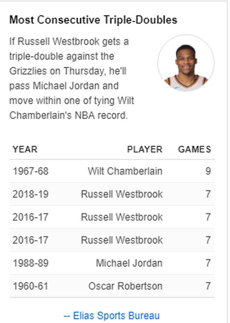 Αυτό ήταν το 7ο συνεχόμενο triple double της αγωνιστικής χρονιάς που τρέχει, κάτι που πέτυχε και το 2016-17, δύο φορές μάλιστα . Το μεγαλύτερο σερί στο ΝΒΑ ανήκει στον Ουίλτ Τσάμπερλέϊν με 9 και έγινε τη σεζόν 1967-68.