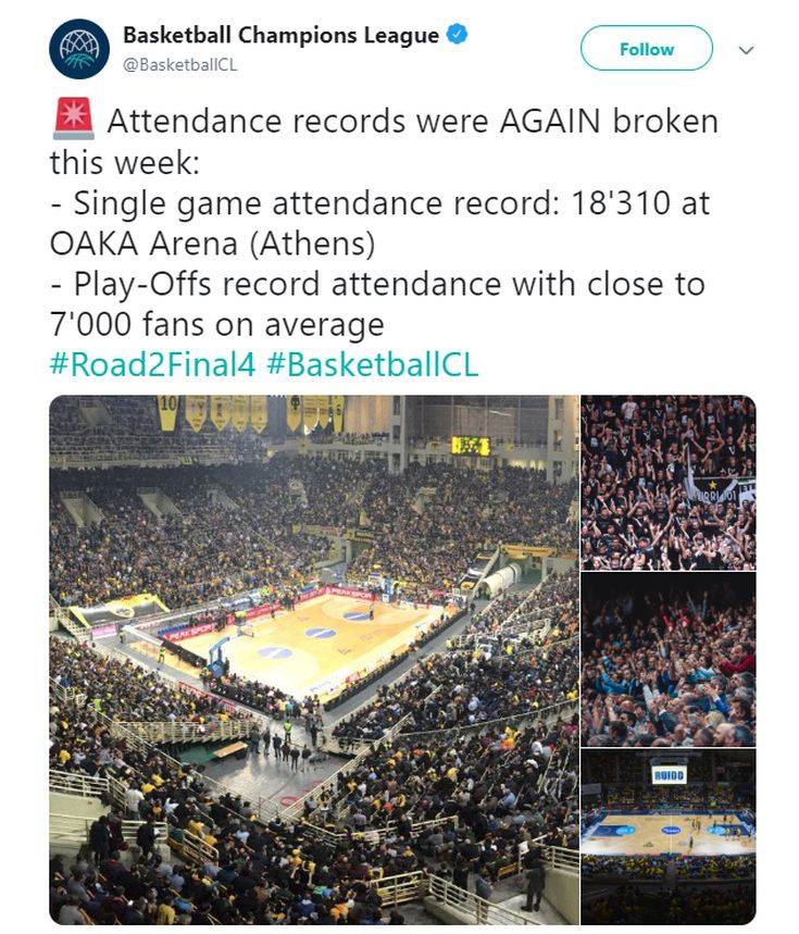 Έτσι, ξεπεράστηκε και ο αριθμός των 17.984 θεατών που παρακολούθησαν από κοντά τον περσινό τελικό του BCL, με τη Μονακό, που καταλαβαίνει κανείς ότι επίσης ανήκει στην Ένωση.