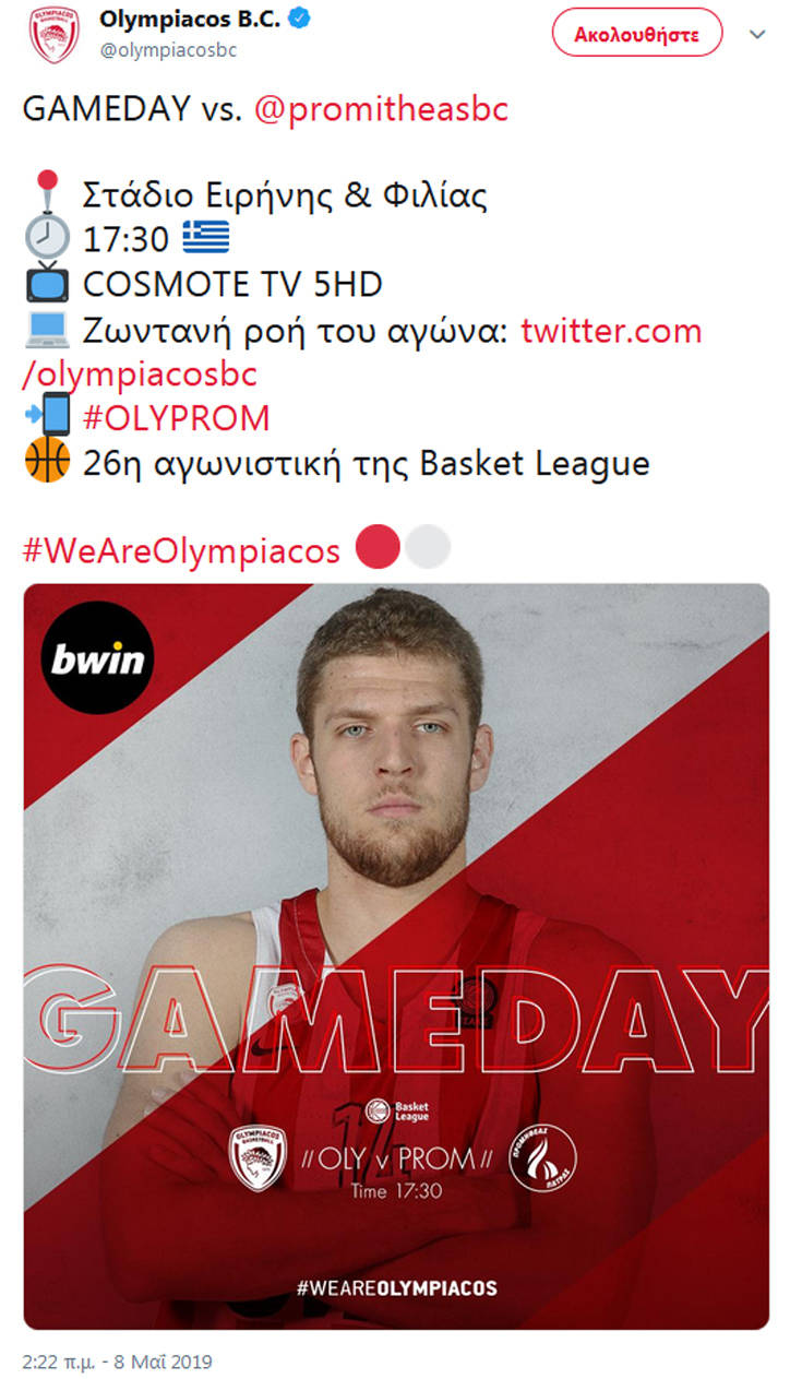 Τελευταία χρονιά εξέλιξη που δείχνει κάτι τέτοιο, είναι το tweet της «ερυθρόλευκης» ΚΑΕ, με το μήνυμα «Gameday», όπως συνήθως συμβαίνει πριν από κάθε παιχνίδι της ομάδας σε Ελλάδα και Ευρώπη.