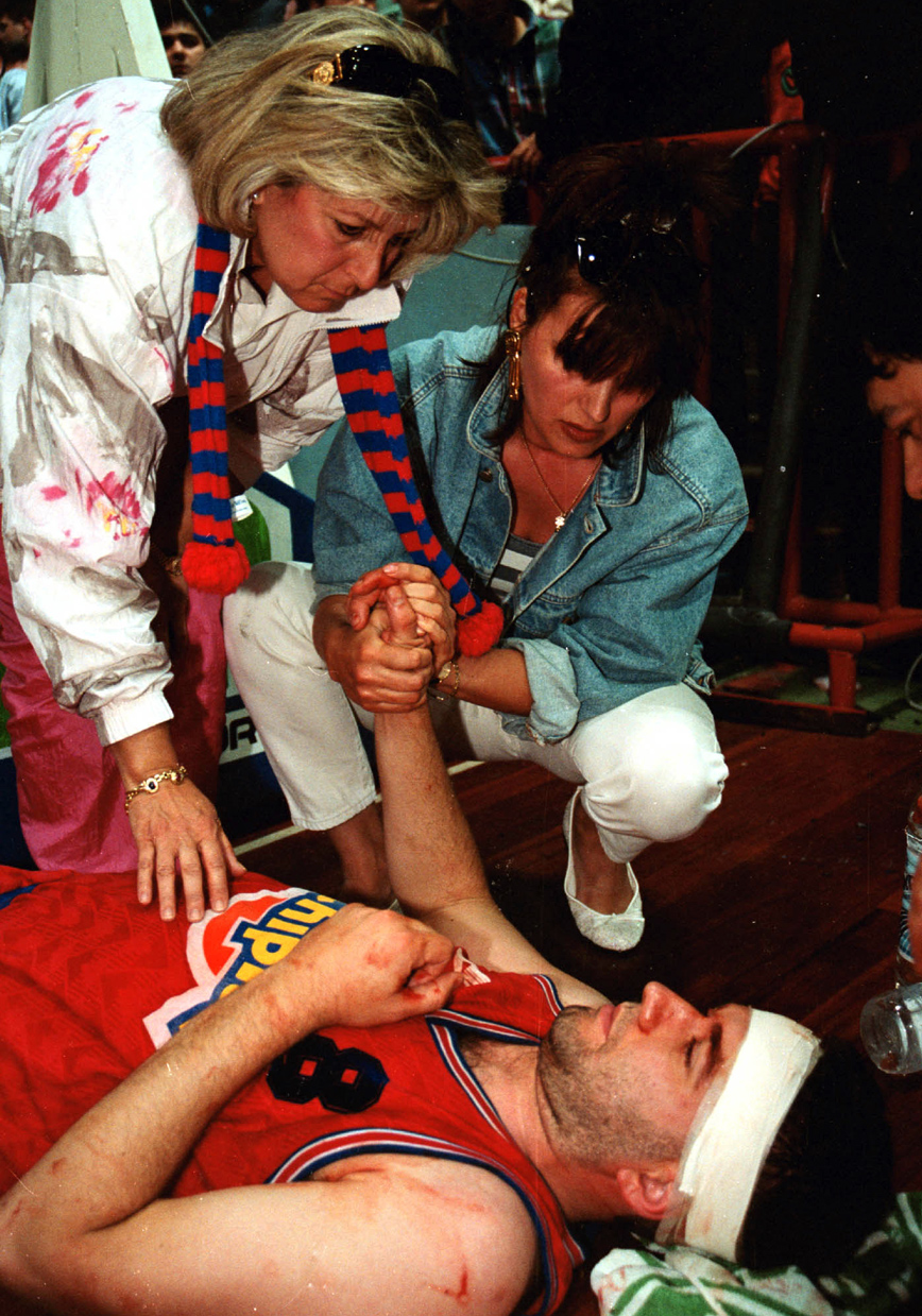 Πέφτει αιμόφυρτος στο παρκέ, αλλά κανείς δεν είχε καταλάβει εκείνη τη στιγμή τη σοβαρότητα του τραυματισμού. Και η ειρωνεία; Στην μπασκέτα δεν είχε τοποθετηθεί ακόμα το προστατευτικό που είχε ήδη αρχίσει να χρησιμοποιείται για να καλύπτει τη βάση της. Ο Γιάνκοβιτς δεν μπορούσε να σηκωθεί…