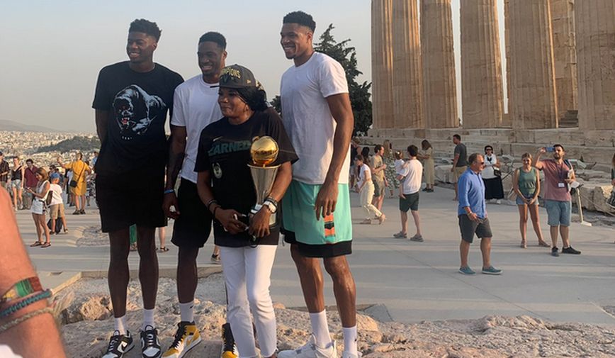 Ο Γιάννης Αντετοκούνμπο επισκέφθηκε την Ακρόπολη, έχοντας αγκαλιά το τρόπαιο του πρωταθλητή ΝΒΑ, αλλά και αυτό του MVP των τελικών.