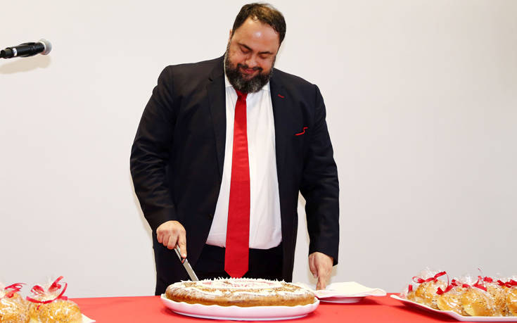 Ο Βαγγέλης Μαρινάκης έδωσε προς τους παίκτες του Ολυμπιακού και την ομάδα το σύνθημα της νίκης στην Τούμπα αλλά και της κατάκτησης του πρωταθλήματος στο περιθώριο της εκδήλωσης της κοπής της πίτας!