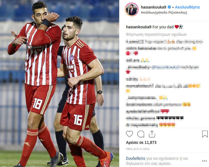 Ο φορ του Ολυμπιακού ανάρτησε την φωτογραφία του που πανηγυρίζει το γκολ του με τον Απόλλωνα στον προσωπικό του λογαριασμό στο Instagram και έγραψε χαρακτηριστικά: «Για σένα πατέρα».