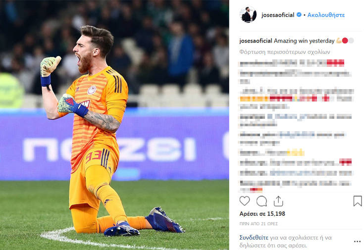 «Απίστευτη νίκη», έγραψε ο τερματοφύλακας των Πειραιωτών στο Instagram.