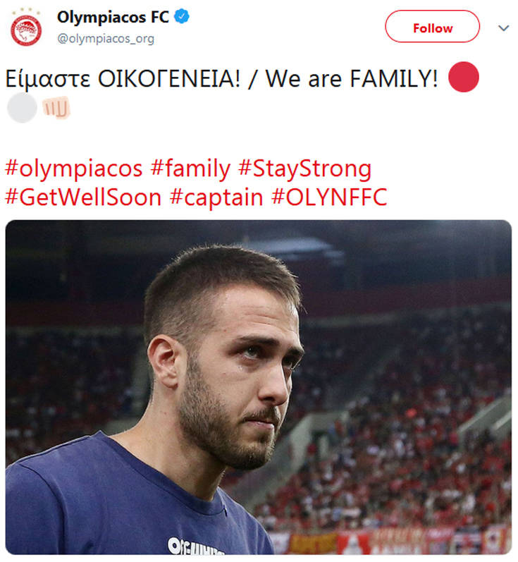Πριν τη σέντρα του φιλικού με τη Νότιγχαμ, οι συμπαίκτες του, ο Πέδρο Μαρτίνς, αλλά και ο Βασίλης Σπανούλης του ευχήθηκαν περαστικά, σε βίντεο που προβλήθηκε στα matrix του «Καραϊσκάκης». Ο Φορτούνης, που είχε βγει στον αγωνιστικό χώρο για να αποθεωθεί από τους οπαδούς, δεν κατάφερε να συγκρατήσει τη συγκίνησή του κι έφυγε δακρυσμένος και καταχειροκροτούμενος.