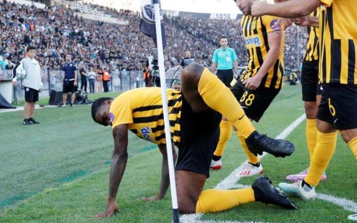 Ο Ιντέγε έτρεξε προς το σημαιάκι του κόρνερ και το πανηγύρισε προκλητικά. Ο Νιγηριανός φορ έκανε πως… κάνει την ανάγκη του στο σημαιάκι.