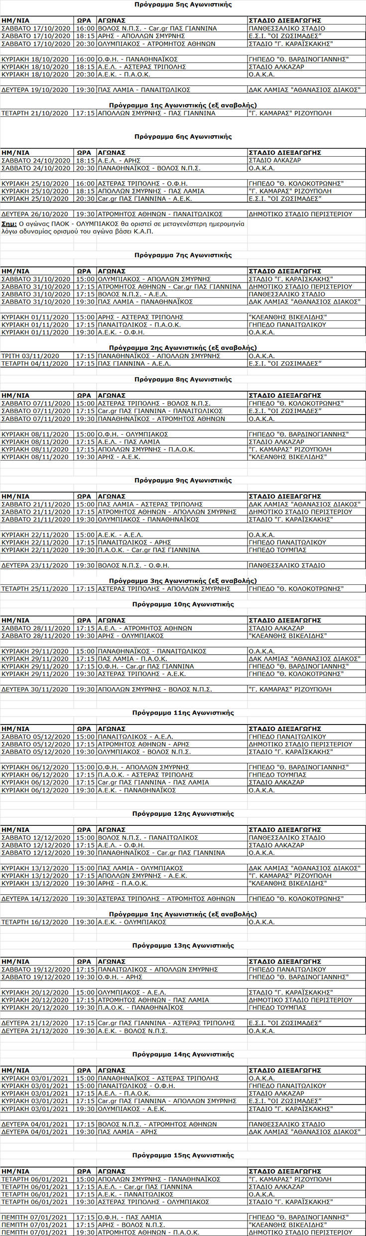 Μέσα στην ανακοίνωση του προγράμματος υπάρχει και ο ορισμός του εξ αναβολής ντέρμπι της 1ης αγωνιστικής, μεταξύ ΑΕΚ και Ολυμπιακού το οποίο θα διεξαχθεί στις 16 Δεκεμβρίου.
