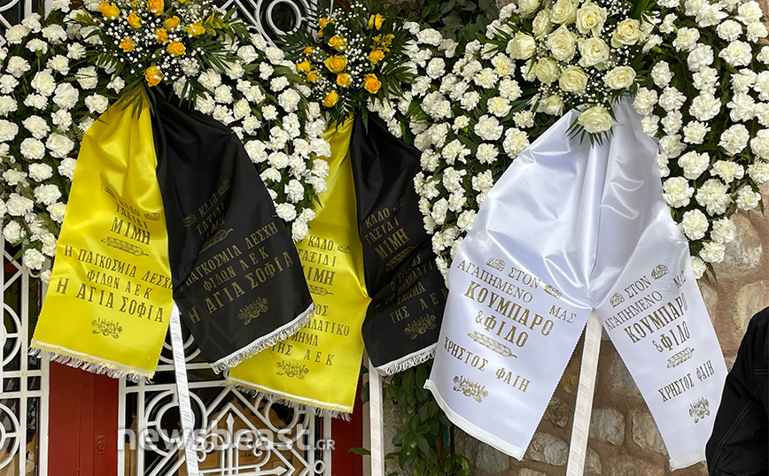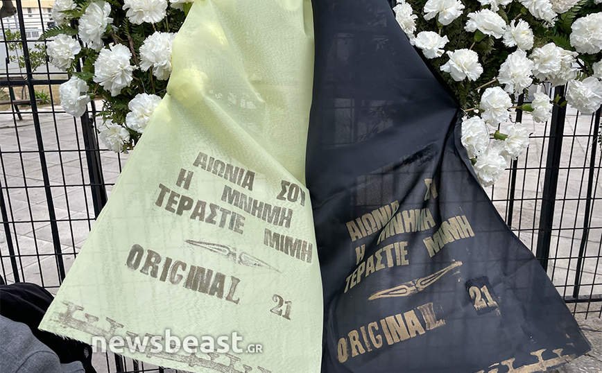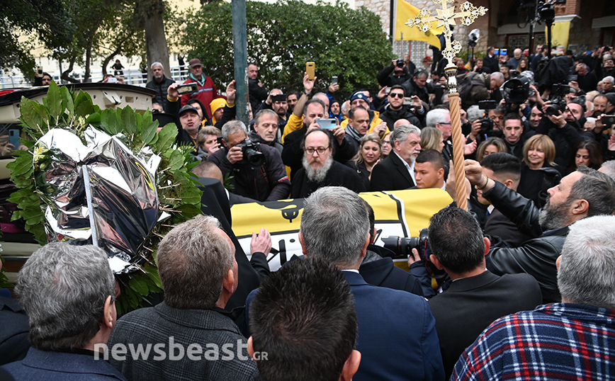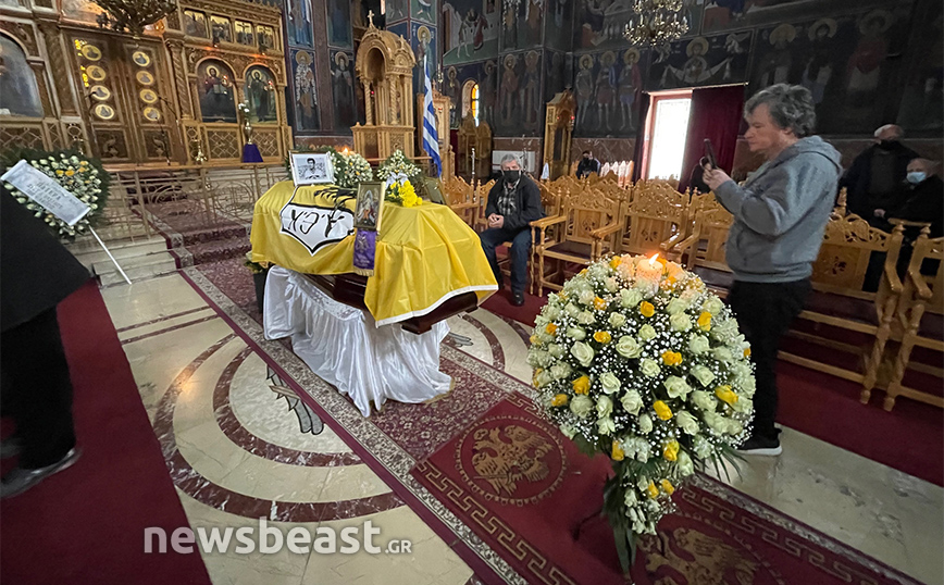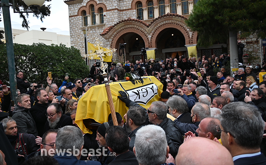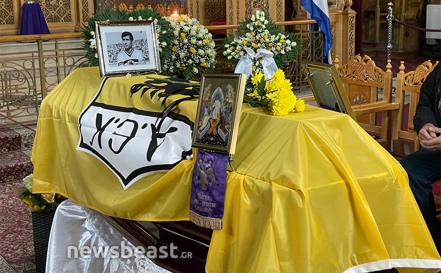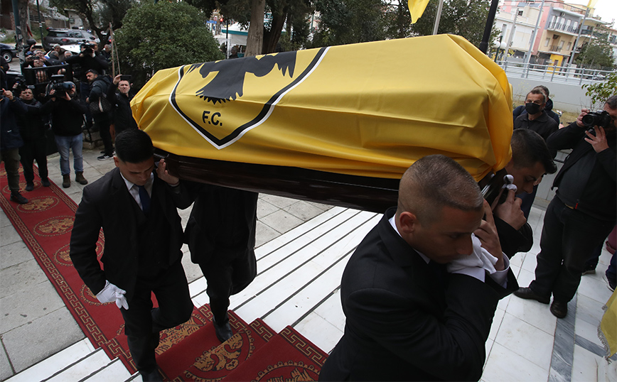 Το φέρετρο στο οποίο βρισκόταν η σορός του Μίμη Παπαϊωάννου ήταν καλυμμένο με τη σημαία της ΑΕΚ.