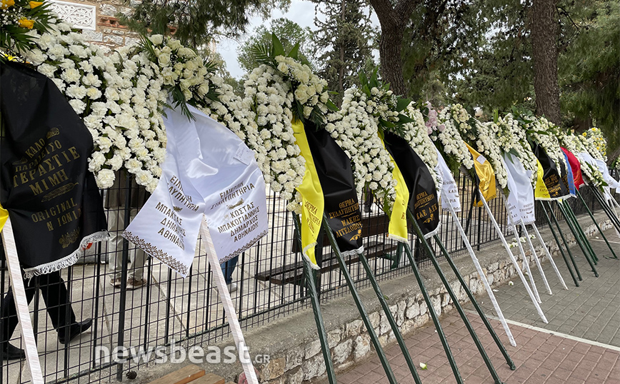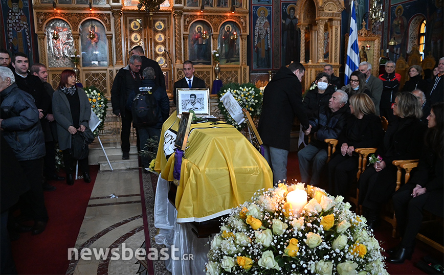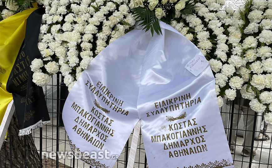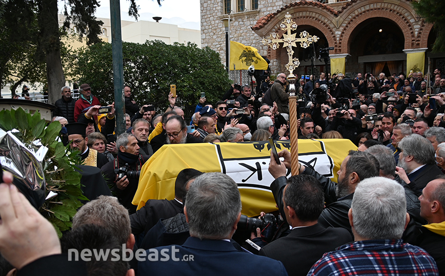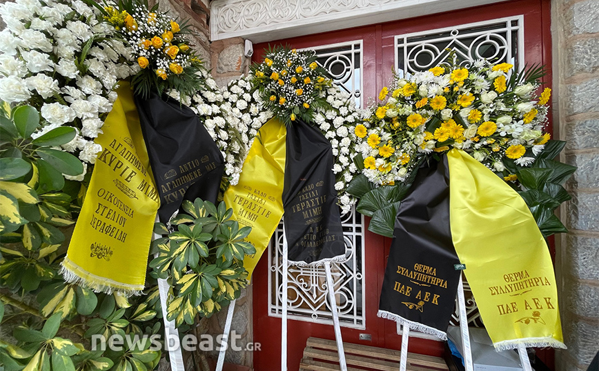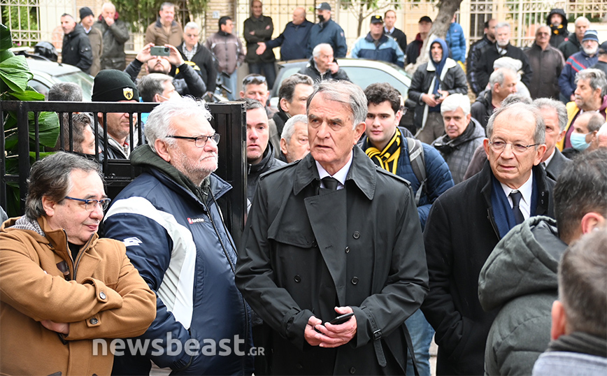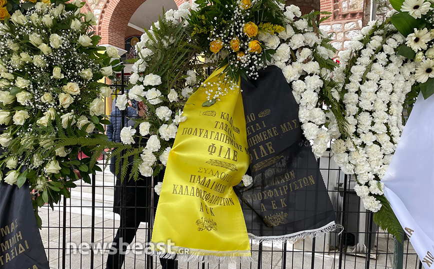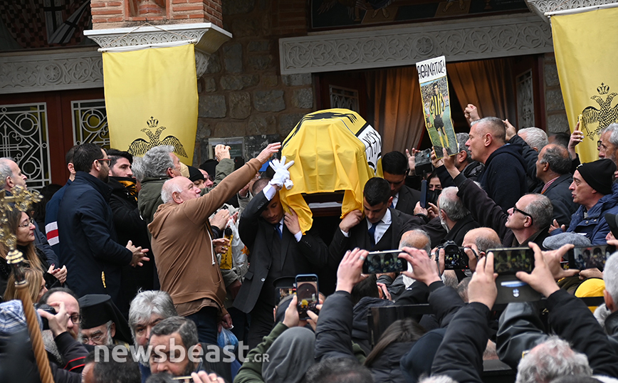 Το φέρετρο στο οποίο βρισκόταν η σορός του Μίμη Παπαϊωάννου ήταν καλυμμένο με τη σημαία της ΑΕΚ.