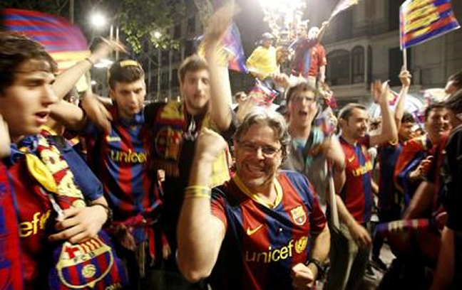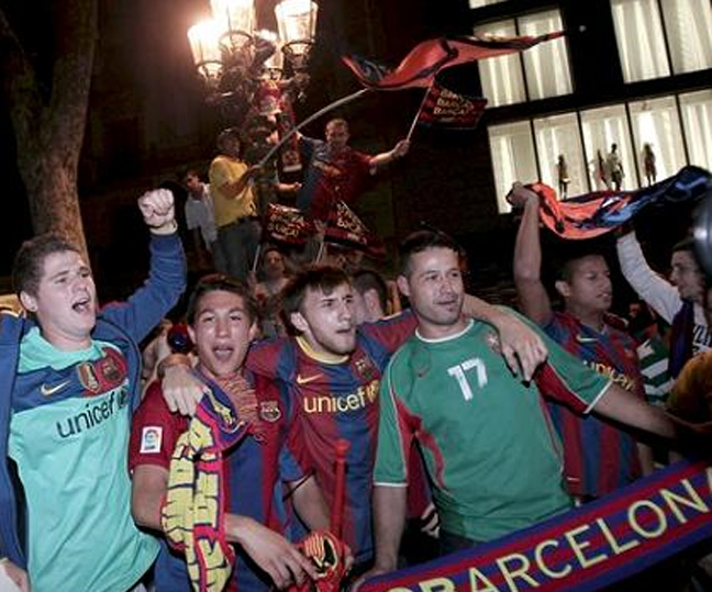 Χιλιάδες οπαδοί της Μπαρτσελόνα πανηγύρισαν με την ψυχή τους την κατάκτηση του τρίτου συνεχούς πρωταθλήματος στα κεντρικά σημεία της πόλης με επίκεντρο την «Καναλέτες». Οι φίλοι των «μπλαουγκράνα» είχαν συγκεντρωθεί από νωρίς και παρακολούθησαν σε γιγαντοοθόνες τον αγώνα με τη Λεβάντε και μετά το τελευταίο σφύριγμα και το 1-1, που εξασφάλισε τον τίτλο στην ομάδα του Πεπ Γκουαρντιόλα, έφτασαν… ενισχύσεις από διάφορα σημεία της πόλης και η νύχτα έγινε μέρα.