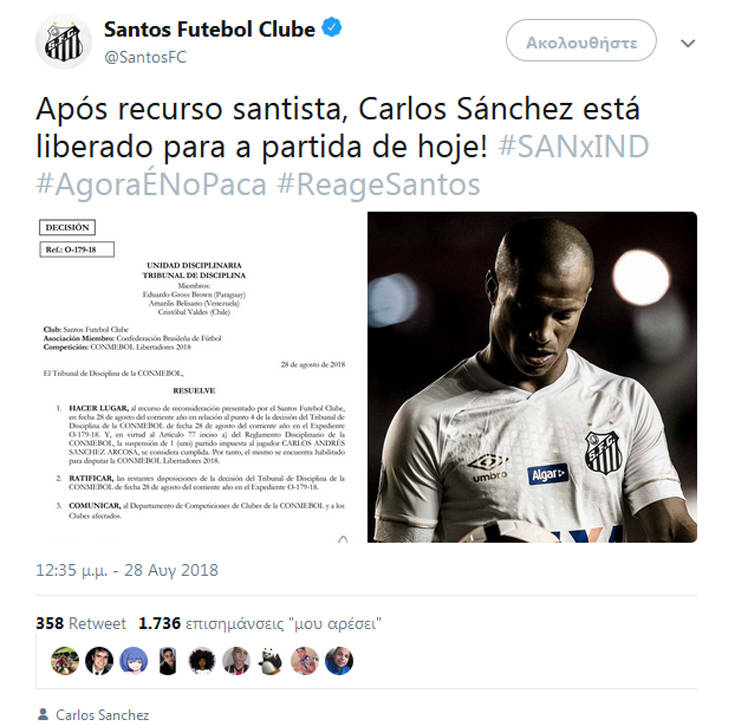 Ο Ουρουγουανός αγωνιζόταν τότε στη Ρίβερ Πλέιτ, ενώ στη συνέχεια μετακόμισε στη Μοντερέι στο Μεξικό. Επέστρεψε αυτό το καλοκαίρι στη λατινική Αμερική, για τη Σάντος, η οποία δεν γνώριζε -όπως φαίνεται- για την τιμωρία του 33χρονου. Μάλιστα, οι Βραζιλιάνοι υποστηρίζουν πως η Ομοσπονδία δεν την ενημέρωσε ποτέ γι’ αυτό το γεγονός.