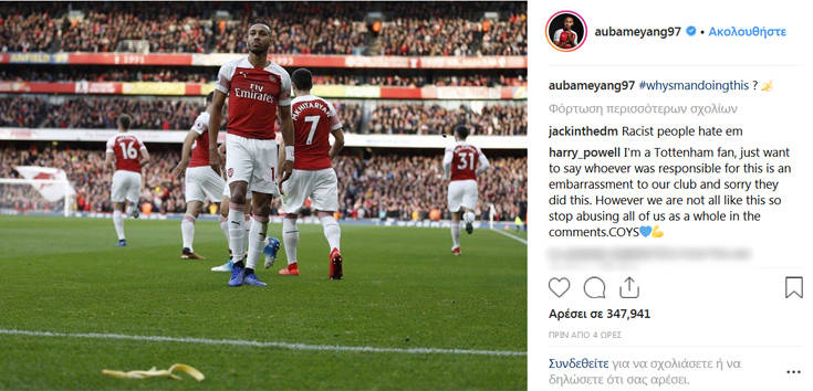 Ο Γκαμπονέζος επιθετικός απάντησε στον οπαδό γράφοντας στο Instagram: «Γιατί οι το κάνουν αυτό οι άνθρωποι;».