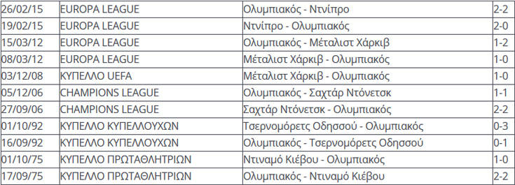 Σε αυτά οι «ερυθρόλευκοι» θα ψάξουν την πρώτη νίκη της ιστορίας τους απέναντι στη συγκεκριμένη ομάδα, με τη σύντομη παράδοση να περιλαμβάνει ένα ακόμα «αντάμωμα» σε ευρωπαϊκή διοργάνωση. Συγκεκριμένα, το μακρινό 1975, οι δυο σύλλογοι είχαν συγκρουστεί στο πλαίσιο του πρώτου γύρου του Κυπέλλου Πρωταθλητριών, με τους Ουκρανούς να πανηγυρίζουν το UEFA Cup Winners Cup της προηγούμενης σεζόν.