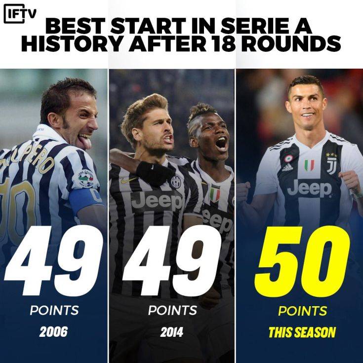Η άφιξη του Κριστιάνο, την έκανε καλύτερη. Για την ακρίβεια, την καλύτερη… ever! Η Γιουβέντους έχει πραγματοποιήσει το πιο θετικό ξεκίνημα σε 18 αγωνιστικές στο πρωτάθλημα, ξεπερνώντας τις προηγούμενες κορυφαίες επιδόσεις της κατά έναν βαθμό!