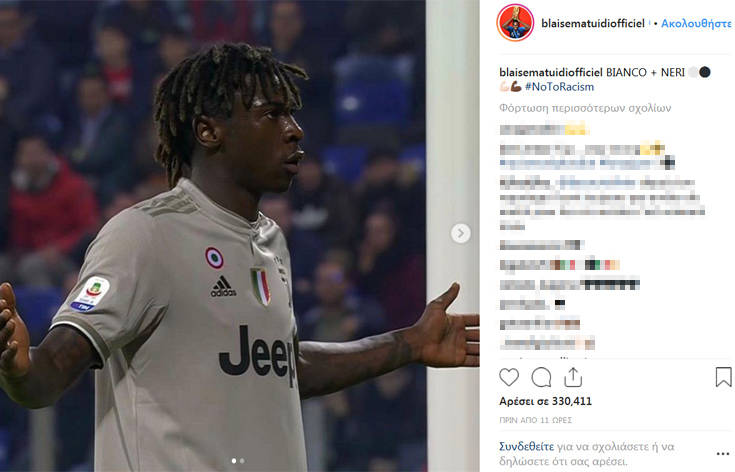 Στο πλευρό του Κιν στάθηκε σχεδόν σύσσωμη η Serie A, με πολλούς συμπαίκτες και αντιπάλους να του εκφράζουν την υποστήριξή τους. Μεταξύ αυτών και ο Μπλεζ Ματουϊντί, ο οποίος «ανέβασε» και εκείνος μια φωτογραφία του 19χρονου επιθετικού, με τη λεζάντα «Λευκοί + Μαύροι» στα ιταλικά, κατά το bianconeri που είναι το προσωνύμιο της Γιουβέντους.