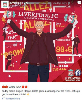 Όλα αυτά συμπεριλαμβάνονται στο εντυπωσιακό σκίτσο που δημοσιεύθηκε στα social media της Λίβερπουλ λίγες ώρες πριν από το ματς με την Τσέλσι, με την σημείωση πως: «Είμαστε η Λίβερπουλ και αυτό σημαίνει πολλά…».