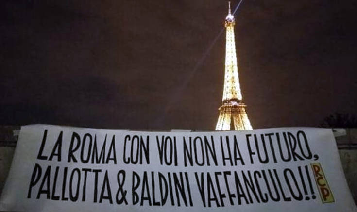 Οι αντιδράσεις των οπαδών της Ρόμα για τον Ντε Ρόσι έχουν πάρει… μορφή επιδημίας, η οποία εξαπλώνεται σε παγκόσμιο επίπεδο. Είναι χαρακτηριστικό ότι πανό κατά της διοίκησης και του Παλότα κρεμάστηκαν όχι μόνο στην ιταλική πρωτεύουσα και σε κάποιες άλλες πόλεις της γειτονικής χώρας, αλλά και σε Νέα Υόρκη, Σίδνεϋ, Παρίσι, Ντίσελντορφ, Νανσί, Κοπεγχάγη, ακόμη και στη Θεσσαλονίκη. Μάλιστα, σχετικό αφιέρωμα φιλοξένησε και η Corriere dello Sport.