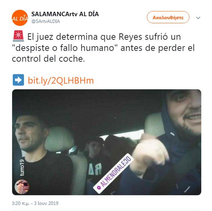 Στη φωτογραφία φαίνεται να οδηγάει ο Ρέγες, με τον Καλδερόν στη θέση του συνοδηγού και τον ξάδερφο του Ισπανού ποδοσφαιριστή στο πίσω κάθισμα.