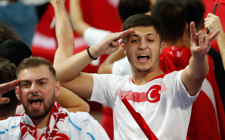 Οι Τούρκοι μάλιστα δεν παρέλειψαν να σχηματίσουν και τη γνωστή χειρονομία που παραπέμπει στους «Γκρίζους Λύκους».