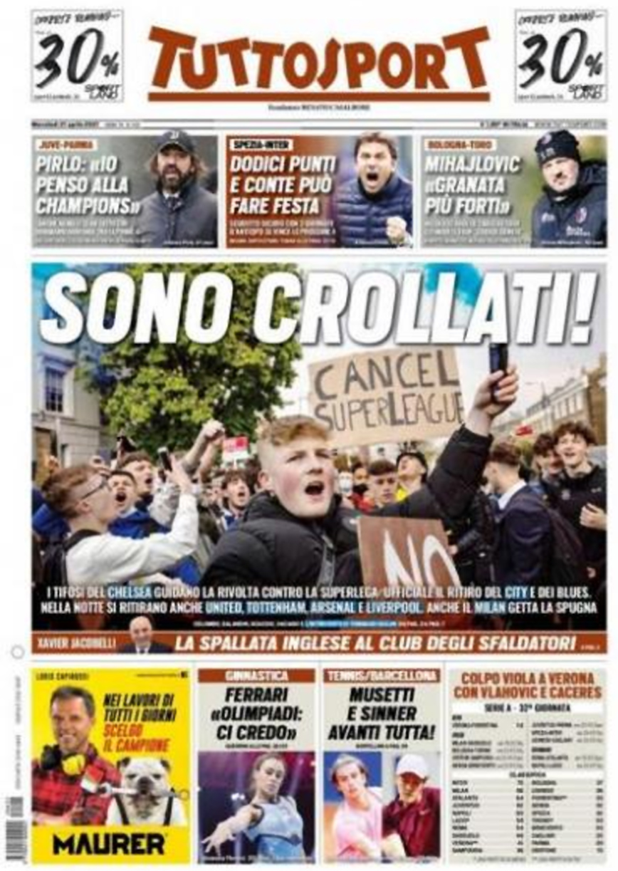 Οι οργισμένες αντιδράσεις των οπαδών (σχεδόν) όλων των εμπλεκομένων ομάδων κατά της κλειστής λίγκας που προετοίμαζαν οι ιδιοκτήτες των συγκεκριμένων συλλόγων απέδωσε καρπούς και μόλις δύο ημέρες μετά την ανακοίνωση της δημιουργίας της European Super League, πλέον απομένει η τυπική ανακοίνωση για τη διάλυση της.