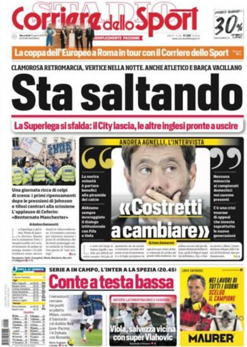 Ο Διεθνής Τύπος πανηγυρίζει για την κατάρρευση της European Super League, κάνοντας λόγο για τη νίκη της δύναμης του φίλαθλου.