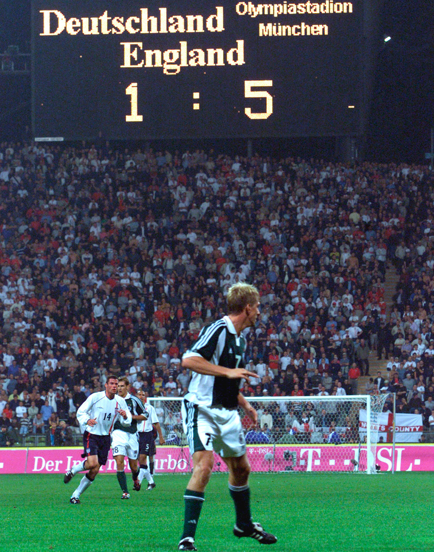 Το ξεκίνημα ήταν ιδανικό για τους Γερμανούς με τον Γιάνκερ να σκοράρει μόλις στα έξι λεπτά όμως το χατ τρικ του Όουεν και οι Τζέραρντ και Χέσκι αποτελείωσαν τους Γερμανούς. Η Αγγλία βρέθηκε πρώτη με τη διαφορά τερμάτων και πέρασε απευθείας με ένα 2-0 επί της Αλβανίας κι ένα 2-2 με την Ελλάδα.