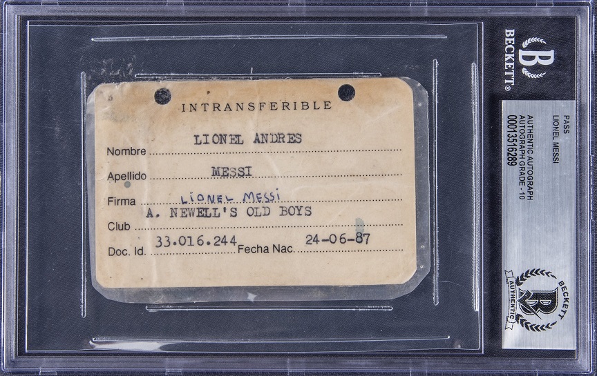 Κατά καιρούς πολλά συλλεκτικά κομμάτια έχουν πωληθεί, αλλά ελάχιστα από τόση μικρή ηλικία. Το έγγραφο φέρει τη σφραγίδα της Ποδοσφαιρικής Ομοσπονδίας του Ροσάριο και μια σπάνια φωτογραφία του Λιονέλ Μέσι. Αυτό, όμως, που σύμφωνα με τους ειδικούς του δίνει μεγαλύτερη αξία είναι πως στο πίσω μέρος του δελτίου φέρεται να έχει γράψει ο ίδιος το όνομά του. Επιπλέον, η Goldin Auctions βαθμολόγησε το αντικείμενο με δέκα στην κλίμακα που χρησιμοποιεί για να υποδείξει το πόσο αυθεντικό χαρακτηρίζεται κάποιο συλλεκτικό κομμάτι που πουλάει.