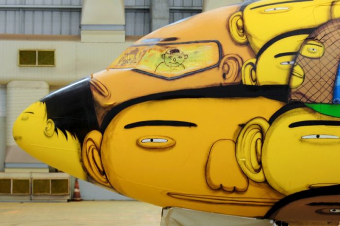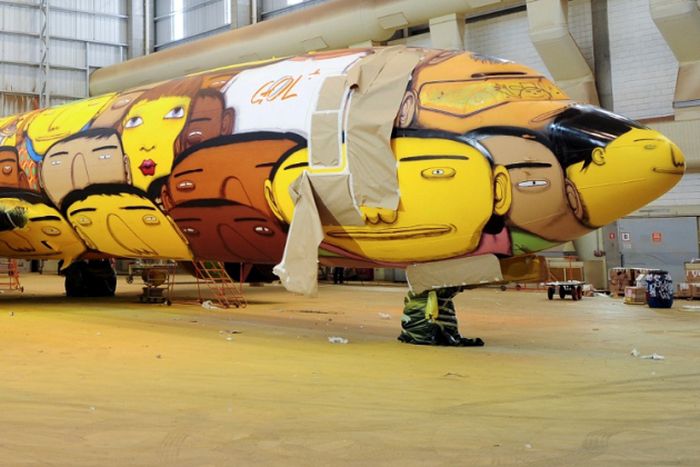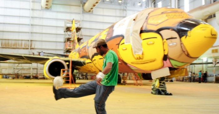 Οι Os Gêmeos είναι ένα δίδυμο που ασχολείται με το γκράφιτι. Και η τελευταία τους δουλειά είναι το αεροπλάνο που μεταφέρει την ομάδα της Βραζιλίας ώστε τα αστέρια της Σελεσάο να μετακινούνται με στυλ.