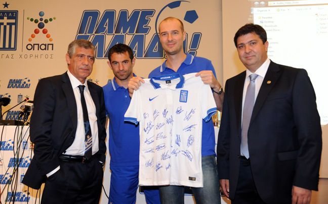 Η διοίκηση της ΟΠΑΠ και εκπρόσωποι της ΕΠΟ συγκεντρώθηκαν στο ξενοδοχείο του Αεροδρομίου της Αθήνας, για να αποχαιρετήσουν την εθνική ομάδα ποδοσφαίρου στο ταξίδι της για τη Βραζιλία και να ευχηθούν καλή επιτυχία! Στο ξενοδοχείο βρίσκονταν ο Φερνάντο Σάντος, ο Γιώργος Καραγκούνης, ο Κώστας Καρσουράνης, ο