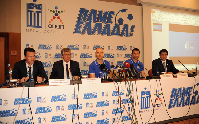 Στο πλαίσιο της παρουσίασης, ο κ. Petr Matejovsky, CMO της ΟΠΑΠ, ο αναπληρωτής πρόεδρος της ΕΠΟ, κ. Ιωάννης Παπακωνσταντίνου, ο προπονητής της Εθνικής Ομάδας, Φερνάντο Σάντος και ο αρχηγός της ομάδας, Γιώργος Καραγκούνης, απηύθυναν σύντομους χαιρετισμούς, ενώ η εκδήλωση έκλεισε σε πανηγυρικό κλίμα με την αίθουσα να σείεται από το τραγούδι του συνθήματος!