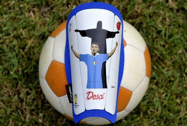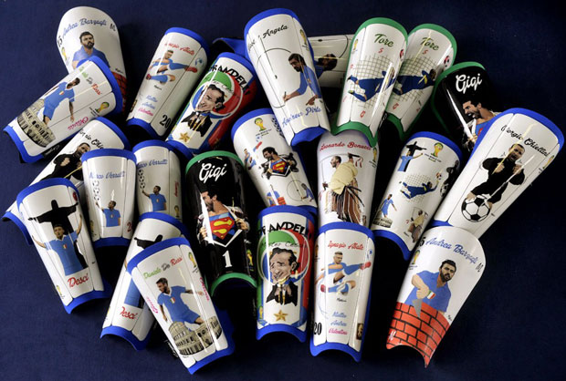 Τα πόδια των Ιταλών διεθνών στη Βραζιλία θα προστατεύονται από επικαλαμίδες που σχεδιάστηκαν στο Casale di Felino, σε μικρή απόσταση από την Πάρμα. Ο Ενρίκο Καμπάρι, πρώην συνεργάτης της Ferrari και ιδρυτής της εταιρείας Campari Compositi δημιούργησε για τους «ατζούρι» τα εν λόγω αξεσουάρ από ανθρακονήματα, τα οποία είναι υπέρ-ελαφριά και διακοσμημένα με βινιέτες που σχεδιάστηκαν από τον γραφίστα Βαλέριο Μαρίνι.