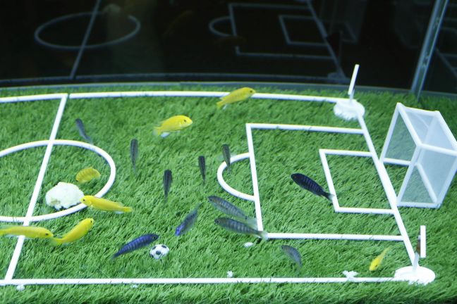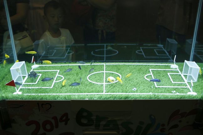 Εκτός όμως από τους Βραζιλιάνους και άλλες χώρες κάνουν ότι μπορούν για να τραβήξουν τα βλέμματα τουριστών γύρω από την συγκεκριμένη αθλητική διοργάνωση. Έτσι λοιπόν το Ενυδρείο της Σανγκάης με αφορμή το Μουντιάλ διοργάνωσε έναν πρωτότυπο αγώνα ποδοσφαίρου που συγκέντρωσε τα θετικά σχόλια και τα χαμόγελα των επισκεπτών του. Οι υπεύθυνοι έφτιαξαν ένα μίνι ποδοσφαιρικό γήπεδο με πρωταγωνιστές… ψάρια!