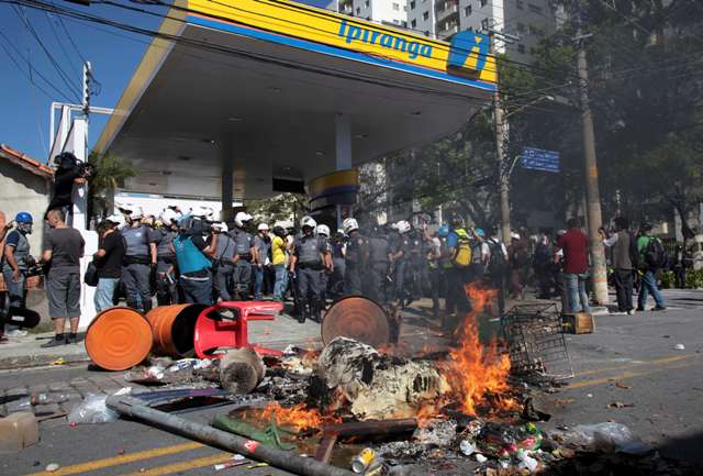Σοβαρά επεισόδια γίνονται αυτή τη στιγμή στο Σάο Πάολο της Βραζιλίας, ανάμεσα σε διαδηλωτές που αντιδρούν για το υψηλό κόστος της διοργάνωσης του Μουντιάλ και την αστυνομία.