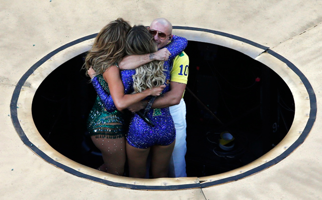 Στους πλέον τυχερούς άντρες του πλανήτη θα λέγαμε ότι κατατάσσεται ο Pitbull. Ο γνωστός Ράπερ πλαισιώθηκε από δύο πανέμορφες παρουσίες τελετή έναρξης του Μουντιάλ 2014 στη Βραζιλία, την Jennifer Lopez και την Claudia Leitte.