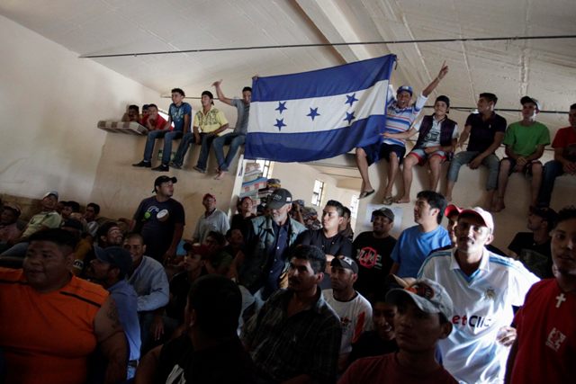 Μετανάστες από την Ονδούρα βλέπουν τον αγώνα της χώρας τους κόντρα στη Γαλλία σε ένα κέντρο μεταναστών στο Saltillo του Μεξικό.