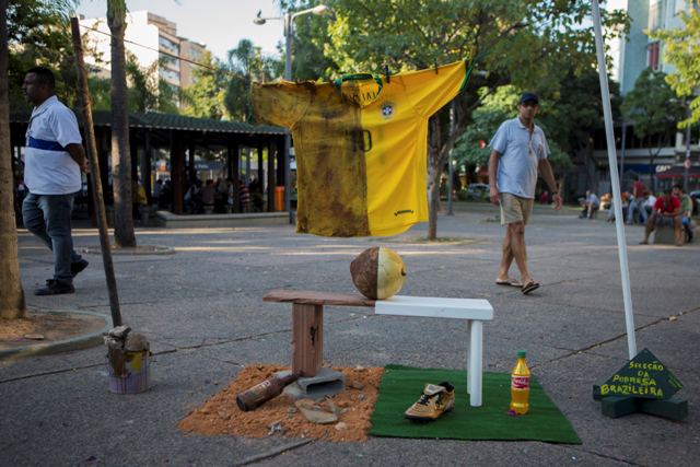 Την εμφάνιση της Βραζιλίας επέλεξαν διαδηλωτές για να τονίσουν τις οικονομικές ανισότητες στη χώρα, κατά τη διάρκεια μιας διαμαρτυρίας για τις δαπάνες του Μουντιάλ στο Ρίο. Από τη μία η εμφάνιση της ομάδας με τον χορηγό και τα χρυσά παπούτσια, και από την άλλη το ποδόσφαιρο στις φτωχογειτονιές.