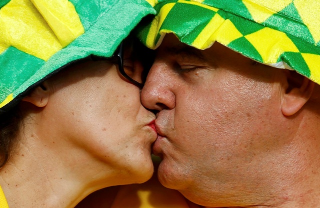 Το φιλί ενός ζευγαριού στις κερκίδες του σταδίου Beira Rio κατά τη διάρκεια του αγώνα Γαλλία – Ονδούρα