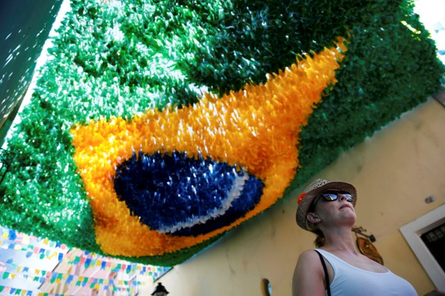 Μια εντυπωσιακή χάρτινη σημαία της Βραζιλίας στο Pelourinho στο Σαλβαδόρ.