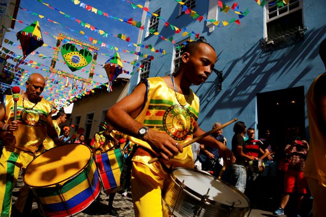 Η μπάντα μιας ξεχωριστής ποδοσφαιρικής παρέλασης στο Pelourinho.