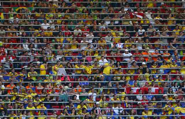 Θεατές του αγώνα Ελβετία – Εκουαδόρ για τον όμιλο E του Παγκοσμίου Κυπέλου στο Εθνικό Στάδιο της Βραζιλίας.