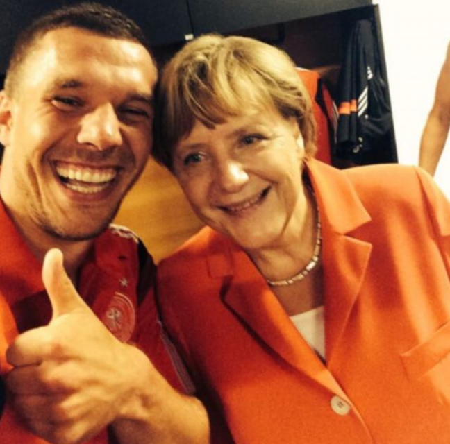 Δεν έκρυψε όμως και την… αδυναμία της στον Λούκας Ποντόλσκι. Ο σταρ της εθνικής Γερμανίας έβγαλε μια selfie με την 59χρονη καγκελάριο και μετά την ανέβασε στα social media.
