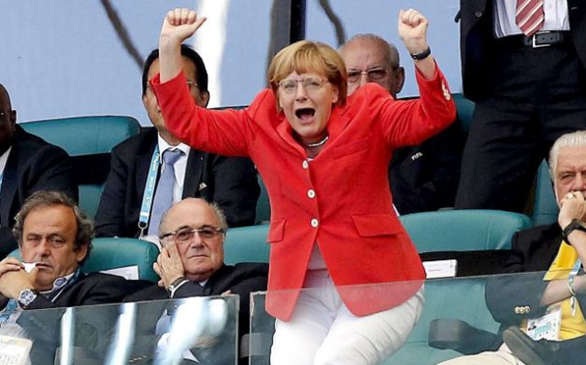 Λατρεύει το ποδόσφαιρο και δεν το κρύβει, ιδίως όταν βλέπει την εθνική Γερμανίας να επικρατεί με 4-0 της Πορτογαλίας. Η Άνγκελα Μέρκελ αφού πανηγύρισε στις κερκίδες της «Αρένα Φοντέ» τον θρίαμβο των «πάντσερ» βρέθηκε και στα αποδυτήρια της ομάδας για να συγχαρεί τους παίκτες.