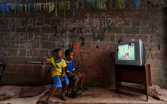 Δύο παιδιά παρακολουθούν την προσπάθεια της χώρας τους στο Παγκόσμιο Κύπελλο 2014
