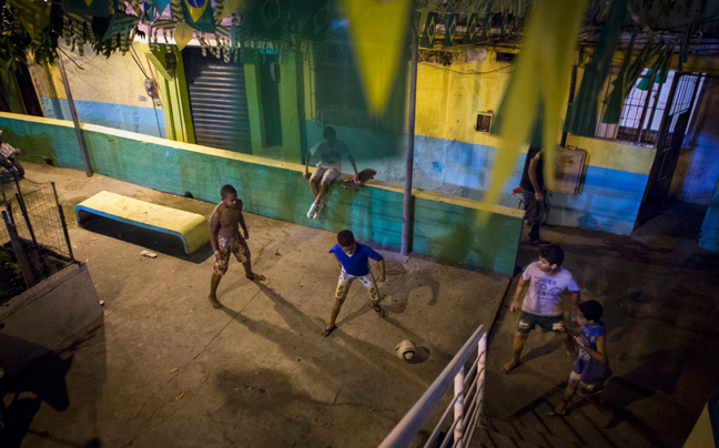 Παιδιά παίζουν μπάλα στη συνοικία Rocinha του Ρίο.