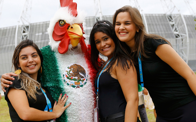 Νεαρές Βραζιλιάνες ποζάρουν μαζί με οπαδό του Μεξικού στη Fortaleza.