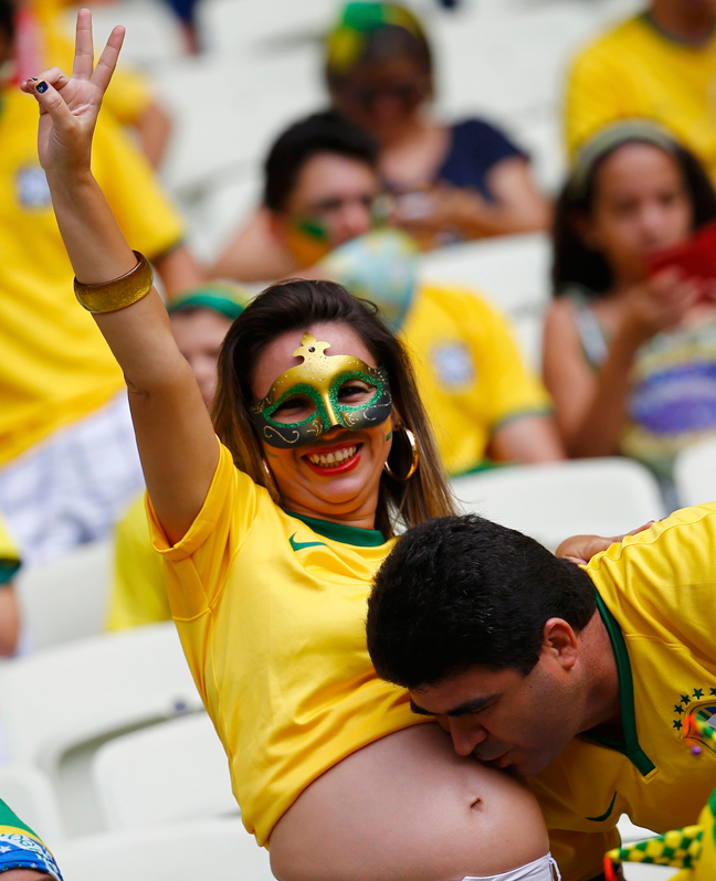 Την κοιλιά της αγαπημένης του, η οποία είναι έγκυος, φιλά ένας οπαδός της Βραζιλίας στο Castelao.