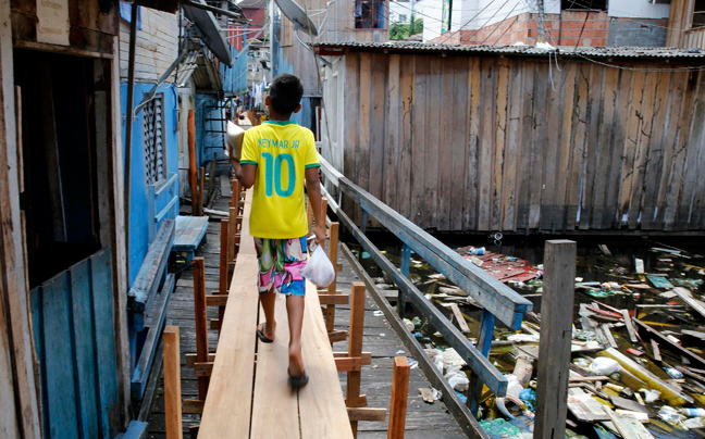 Ένα αγόρι φωτογραφήθηκε σε μια φτωχογειτονιά της Βραζιλίας να φορά μπλούζα του σταρ της χώρας του, Νεϊμάρ.