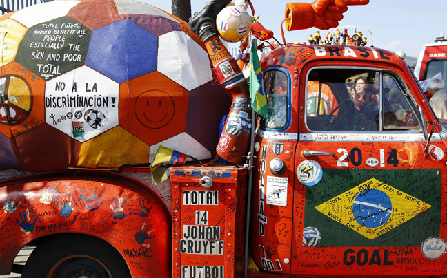 Ένα βανάκι υποστηρικτών της Ολλανδίας βρίσκεται έξω από το γήπεδο στο Sao Paulo, όπου έγινε η τελευταία προπόνηση της ομάδας.