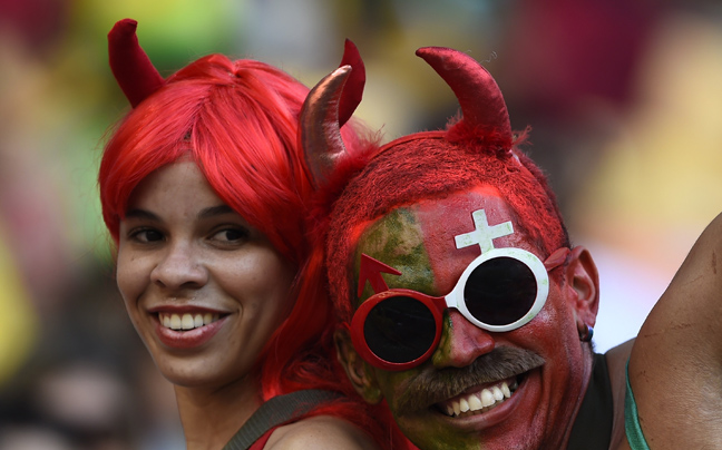 Οπαδοί της Πορτογαλίας ποζάρουν πριν τον αγώνα με τις ΗΠΑ.